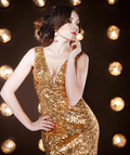 - All-over premium gold sequin detailing for a radiant glow