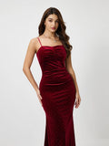 Make an entrance in this elegant statement gown. The rich tone with all-over shimmer detailing creates a luxe glow, while the ruched bodice adds a flattering, sculpted finish—perfect for cocktail nights, receptions, and special events.